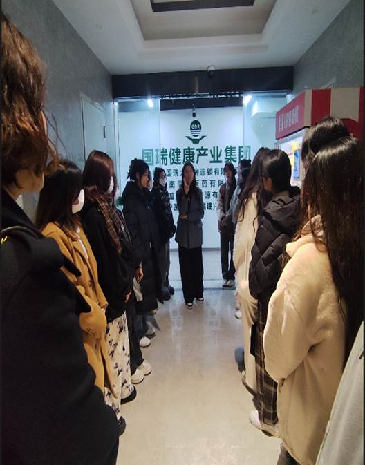 抵达企业后,国瑞药业的董事长陈达、人力资源部负责人许多多首先向师生们的到来致以热烈欢迎,并简要介绍了公司的发展历程、企业文化以及在医药电商领域的卓越成就,让同学们对国瑞药业及其子公司有了大致的了解,激发了同学们极大的兴趣与好奇。