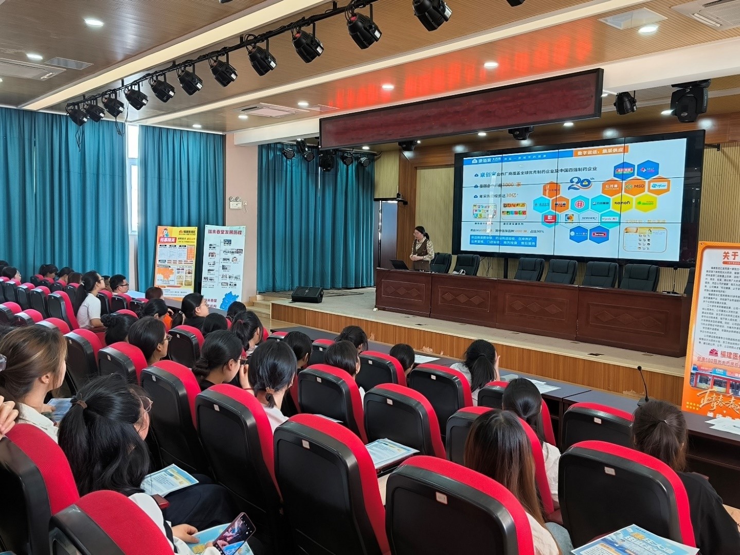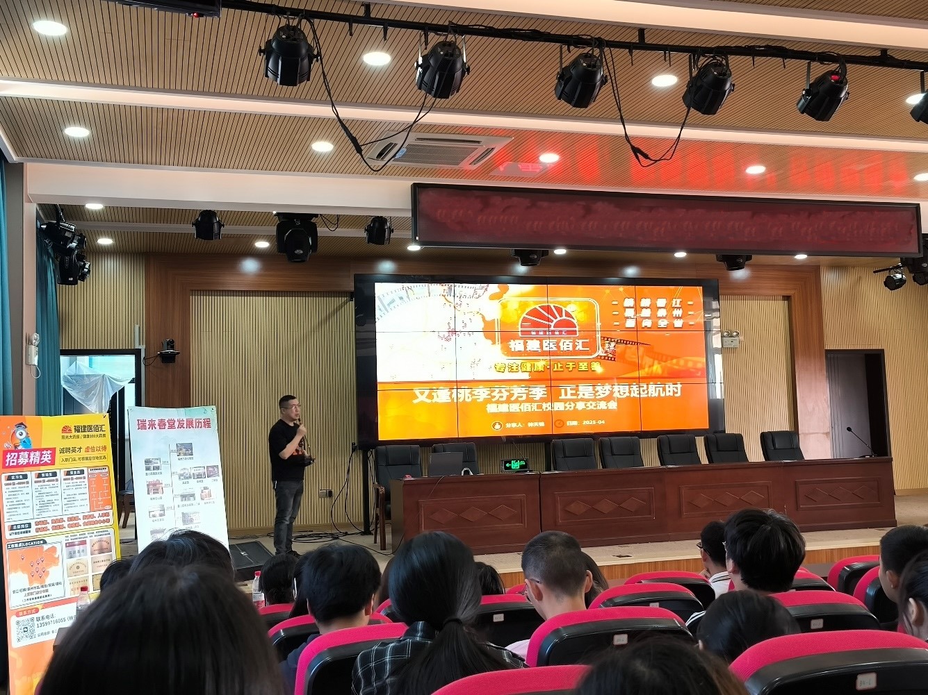 2025年4月16日,由药学教研室、中药学教研室联合举办的“携梦启航,职通未来”-药学、中药学专业第二场实习就业宣讲会在福清校区开展。康佰家医药集团股份有限公司、瑞来春堂中医馆及医佰汇健康产业投资有限责任公司3家行业知名企业齐聚校园,为学院学生带来丰富的实习岗位。双选会由中药学教研室佘雪花老师主持。
