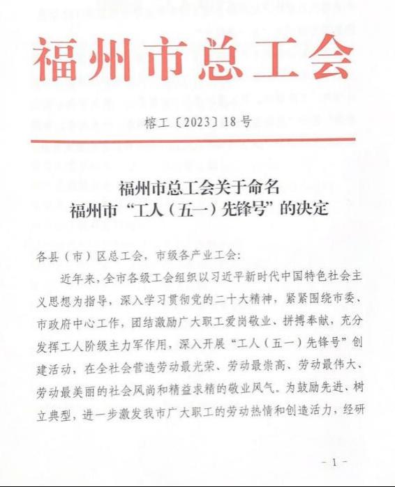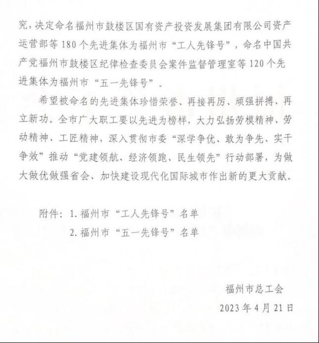 近日,福州市总工会公布了2023年“工人(五一)先锋号”表彰结果,闽江师范高等专科学校医护学院附属综合门诊部光荣上榜,荣获2023年福州市“五一先锋号”荣誉称号。