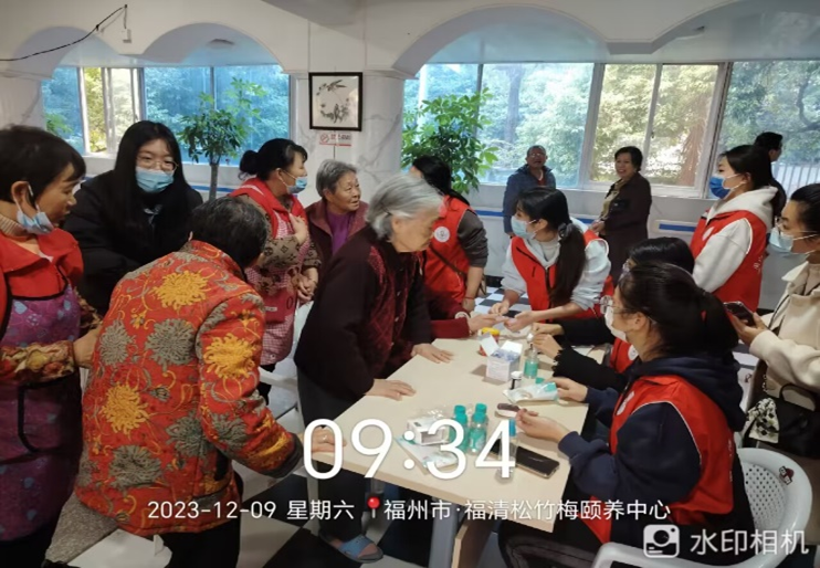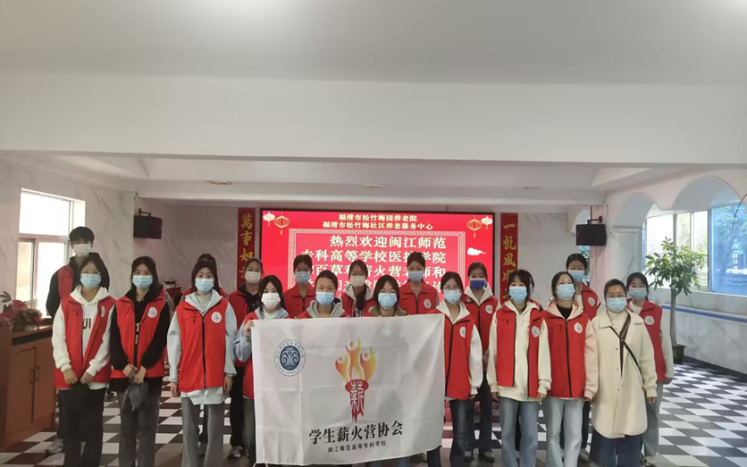 百廿闽师,历史悠远,为了传递生命的薪火,为了培养医护学院学子们的人文关怀能力,更为社会传递一份温情,李清凤技能大师工作室携学生薪火营协会和学生御百草社于2023年12月9日前往福清市松竹梅颐养中心开展“携手社区民众,共建健康家园”义诊志愿服务。