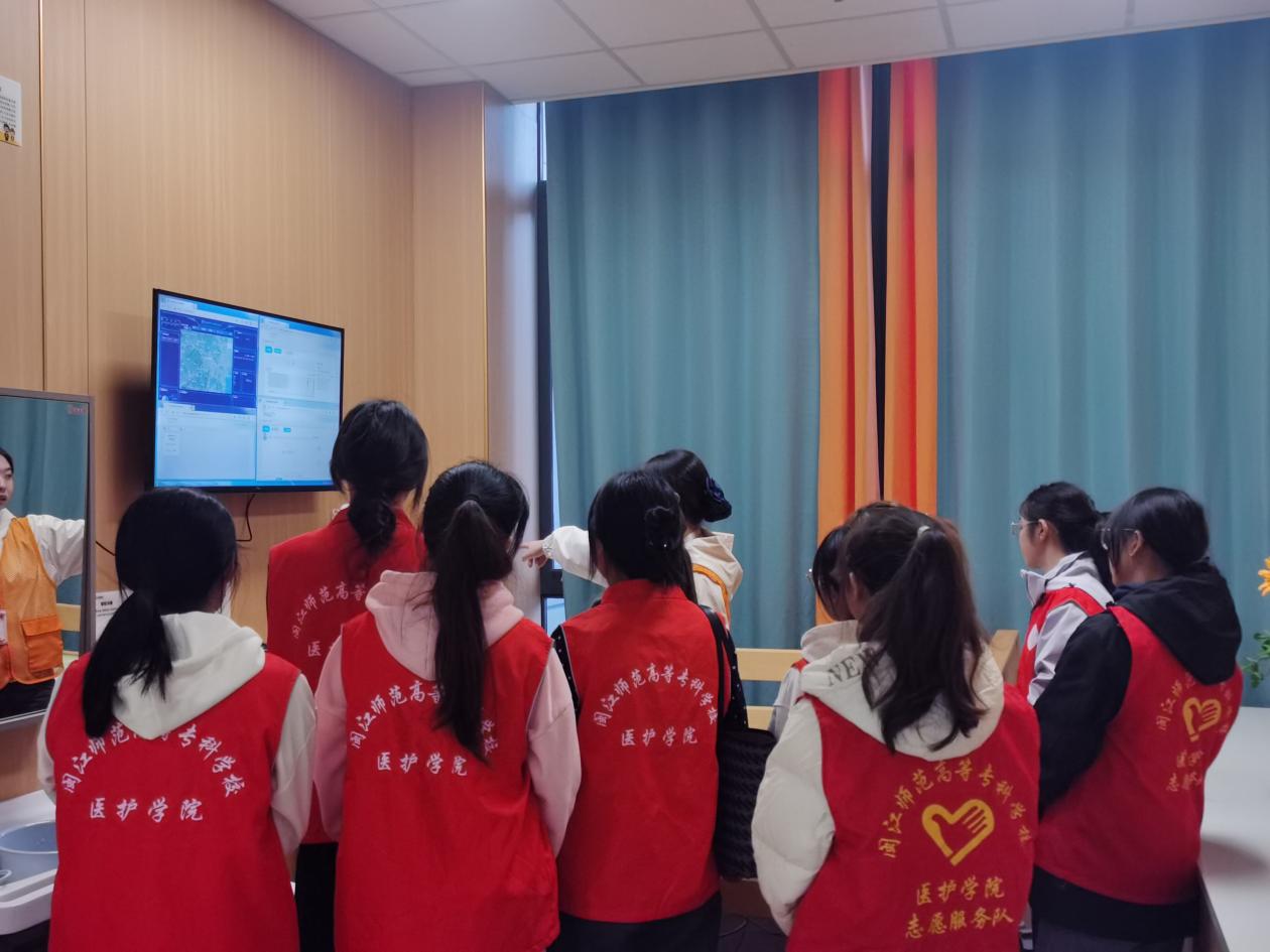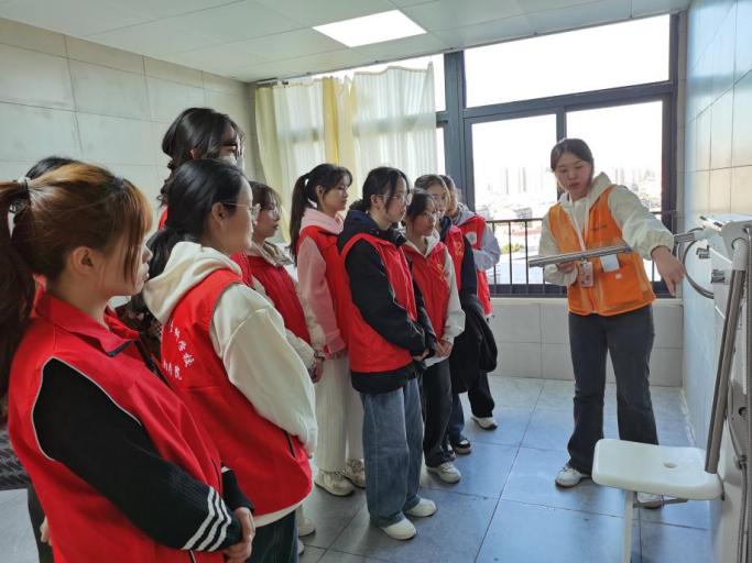 接近活动的尾声,志愿者们将爷爷奶奶送出活动室。后续,颐养中心的工作人员带领志愿者们参观了颐养中心,通过实地参观,切身感受颐养中心的工作环境、智慧化的设施设备对照护老人带来的便捷与舒适,这让志愿者们对养老就业方向有了新的认知。