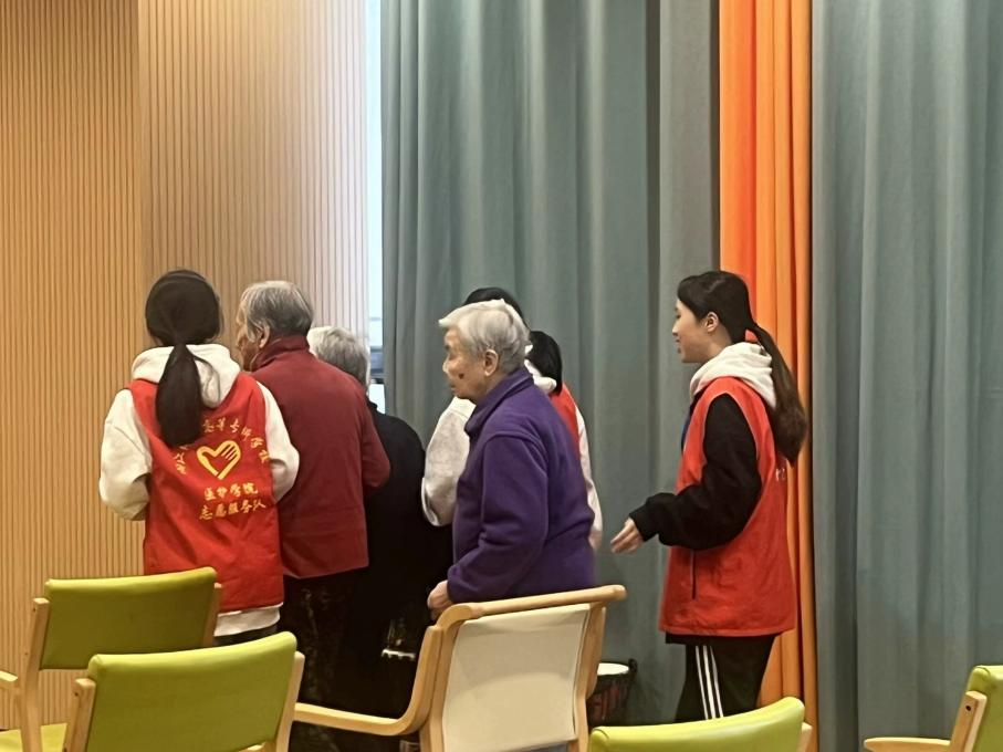 活动结束后,志愿者们陪伴老人们回到各自的房间,确保他们安全舒适。