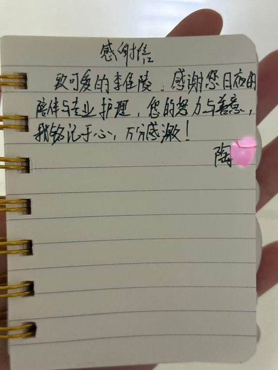 李佳陵同学表示,这封感谢信是她实习生涯中最珍贵的礼物。未来将带着这份肯定,深耕护理专业,用专业与爱心践行护理使命。
