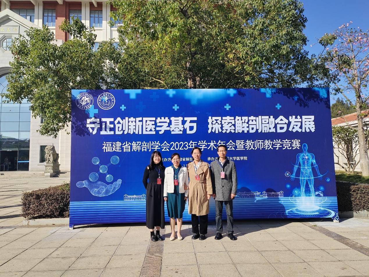 福建省解剖学会2023年学术年会暨教师教学竞赛于11月17日至19日在厦门大学医学院隆重举行,本次解剖学教学竞赛汇聚了福建省内各所医学高校的教学精英,我院由许娟娟老师带队,共三名教师参加了此次比赛。经过激烈的角逐,我院教师林敏娜老师荣获二等奖,陈云燕、陈雄杰老师荣获三等奖。