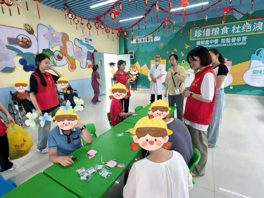 “暖康润心”师生志愿服务队和康复治疗技术专业学生立足专业优势,助力特殊群体体验中医药文化。活动将党建引领转化为公益实践动能,为特殊群体搭建社会参与、价值认同的包容性平台,实现文化传承与民生服务的双向赋能。