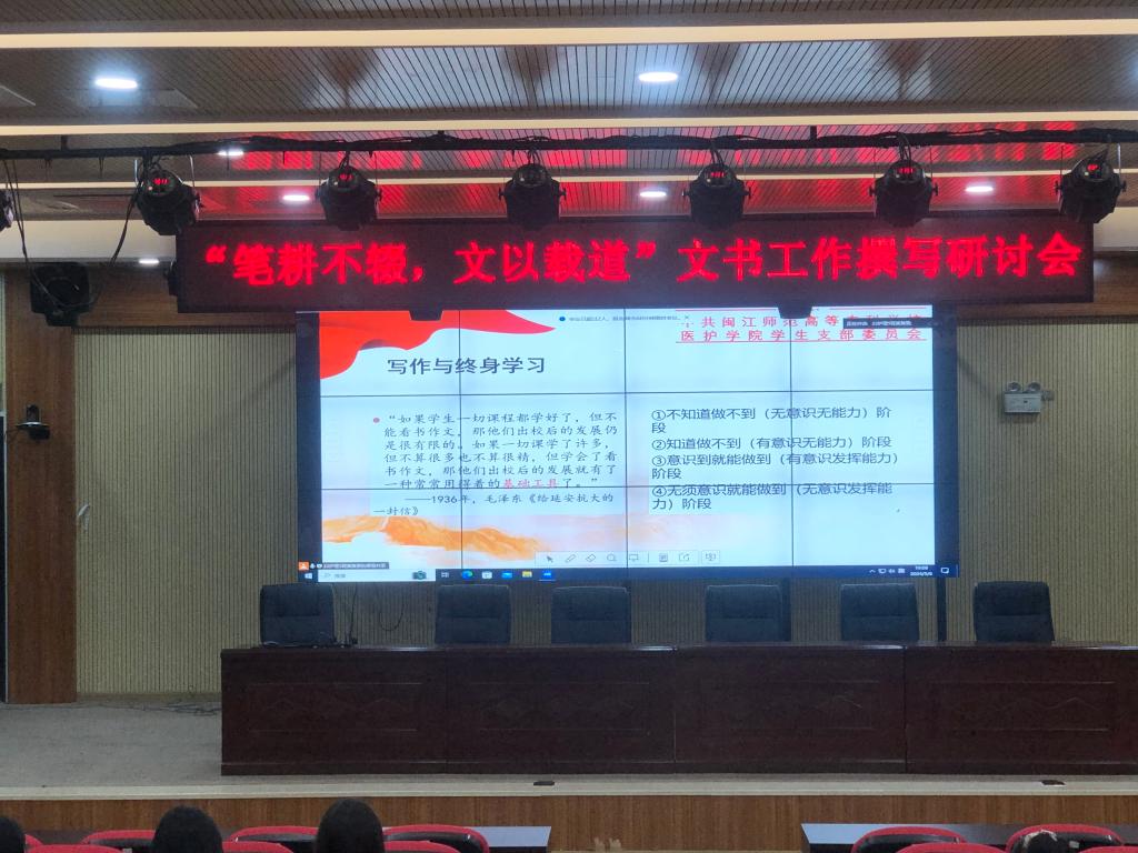 为推进医护学院学生支部的文风建设,锤炼支部党员同志的党性,提升学院团学干部的综合素质。医护学院学生支部于2024年5月6日开展“笔耕不辍,文以载道”主题党课暨团学干部写作培训。