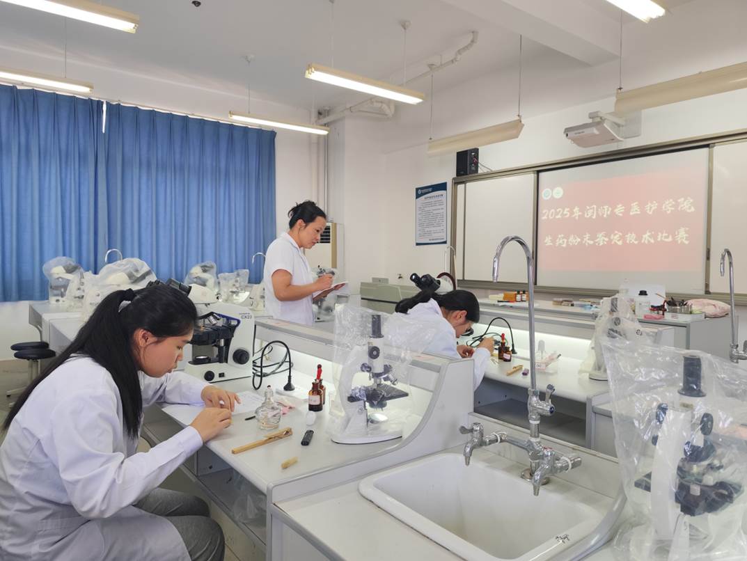 本次竞赛创新融合传统生药鉴别技艺与现代显微技术,通过模拟真实质检岗位任务,强化学生“微观辨药”的核心职业能力。选手需在限定时间内完成未知生药粉末的鉴定,既考验其对《中国药典》显微鉴别要点的掌握,更锤炼其严谨求实的科学态度与精益求精的工匠精神。药学教研室主任林晶老师表示:“显微鉴定是生药质量控制的‘火眼金睛’,此次竞赛为后续课程融入‘岗课赛证’理念提供了鲜活范本。”
