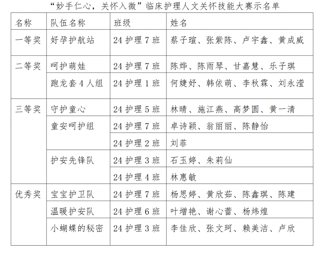 经过专业评审从人文关怀体现、沟通技巧运用、角色贴合自然等综合评定,获奖名单如下:
