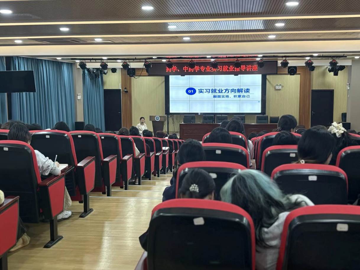 为精准助力药学、中药学专业学子明晰职业方向、提升求职竞争力,2026年3月23日晚,医护学院药学教研室、中药学教研室联合青藤班主任工作室开展实习就业指导专题讲座。本次讲座由中药学教研室主任佘雪花老师主讲,250余名学生参加。