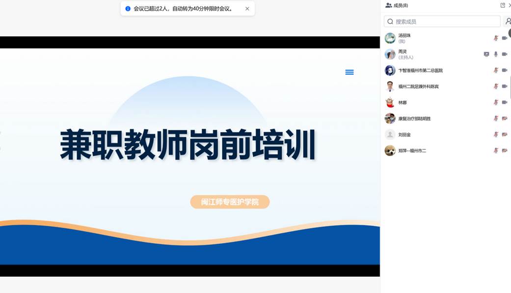 为帮助外聘教师快速融入教学、规范教学行为,近日,医护学院组织各教研室线上开展“外聘教师岗前培训”,为新学期教学工作有序开展奠定基础。