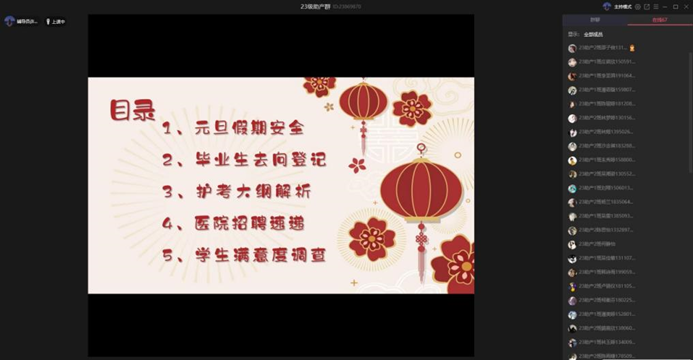 12月28日晚,医护学院组织全院学生开展第18周晚点名活动,围绕岁末宿舍安全、诚信教育、元旦假期安全、医院招聘速递及地震常识等内容展开系统教育。