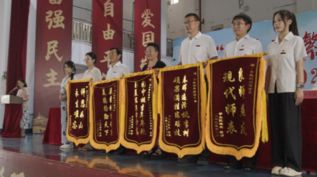 毕业生代表黄雅雯、阮雅欣向学院和恩师敬赠锦旗,深情表达对母校与恩师的崇高敬意。“园中桃李年年艳,国厦栋梁节节高”诉说着对学院的诚挚谢意;“关爱桃李学子,美德扬彻天下”凝结着对陈锦香副书记师者仁心的崇高敬意;“春晖遍泽桃李树,硕果满挂琼瑶枝”礼赞着陈胜副处长坚守育人的初心;“良师益友,现代师表”、“师恩如山,永生难忘”则道尽了与辅导员吴艳红、闻迪老师亦师亦友的深厚情谊。这份情谊,正如榕城绵长的茉莉花香,将永远萦绕在每位学子的生命旅程中。