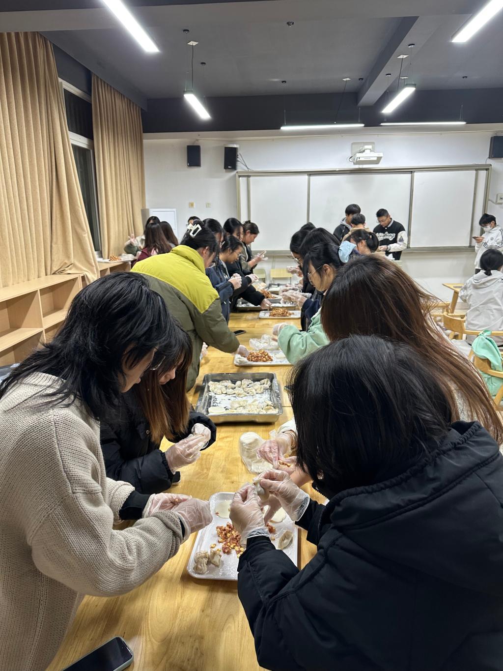 活动第一环节,同学们讲解了冬至的传统习俗,冬至作为中国重要的传统节日,蕴含着丰富的文化内涵,其习俗如北方吃饺子、南方吃汤圆等,都有着独特的寓意。随后大家开始分组包饺子比赛,各小组同学大显身手,创意无限,“最佳造型饺子” 纷纷亮相,有元宝状模样,亦有柳叶形状。一番激烈比拼后,“最快包饺子小组” 脱颖而出,现场其乐融融。