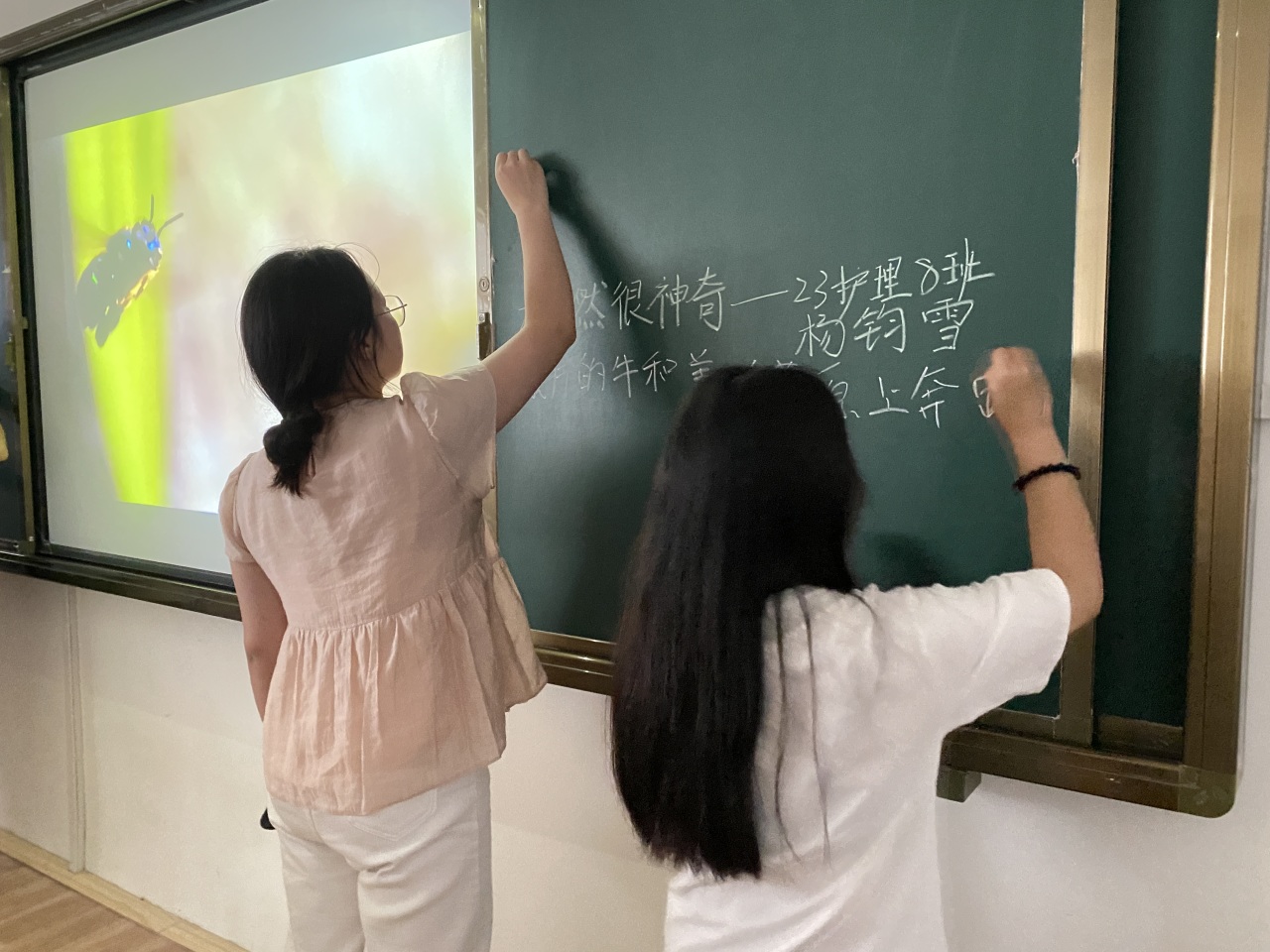 此外,活动还特别设置了观后感分享环节。同学们踊跃上台,分享自己的观影心得和环保行动计划。他们的分享不仅展现了医护学子的青春风采,更传递了强烈的环保责任感和使命感。其中一名学生计划启动校园内的垃圾分类指导项目,而另一位则打算开设环保主题的线上课程,普及地球保护知识。