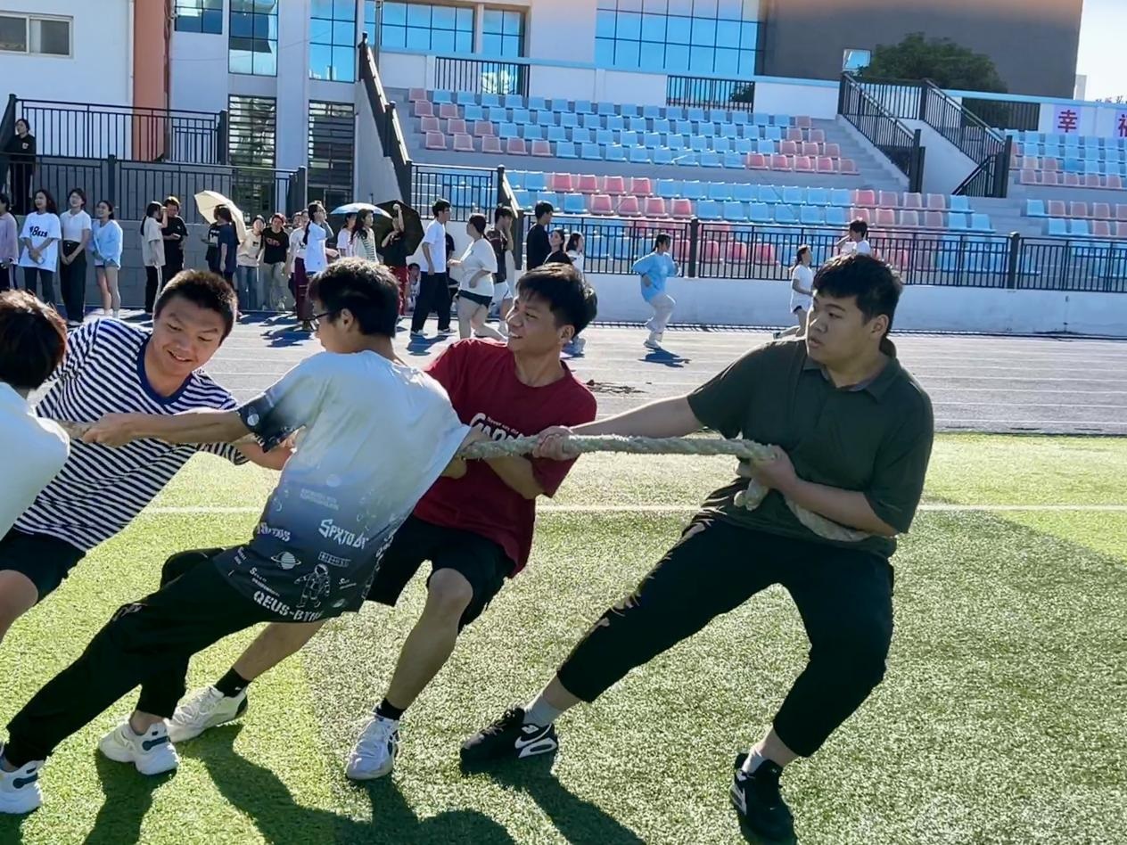本次体育活动设置了多种比赛项目,包括5v5篮球比赛、拔河比赛以及跳绳比赛。篮球比赛中,球员们在这片阳光下挥洒汗水,竞相争夺,每一个跳跃,每一个投篮,都凝聚着他们的力量与执着;拔河比赛中,双方队员握紧绳索,身体后倾,双腿死死蹬住地面,全力以赴地拉扯着绳子,为了团队的胜利贡献自己的一份力;跳绳比赛中,运动员们配合摇绳同学的节奏,快速而有序的完成自己的动作。这些比赛项目不仅考验了同学们的个人技能,更重要的是展现了团队协作的力量。
