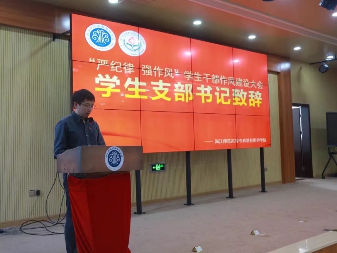 紧接着,由医护学院团委书记许璐颖老师发表讲话,许老师从自身工作经验出发,指出了学生干部在工作中面临的挑战,如跨校区协作和缺乏指导等问题,并强调了责任感和执行力的重要性。她鼓励新任干部以匠心精神务实工作,团结进取,不仅完成本职任务,还要提升个人能力,继承并发扬医护学院的优秀传统。