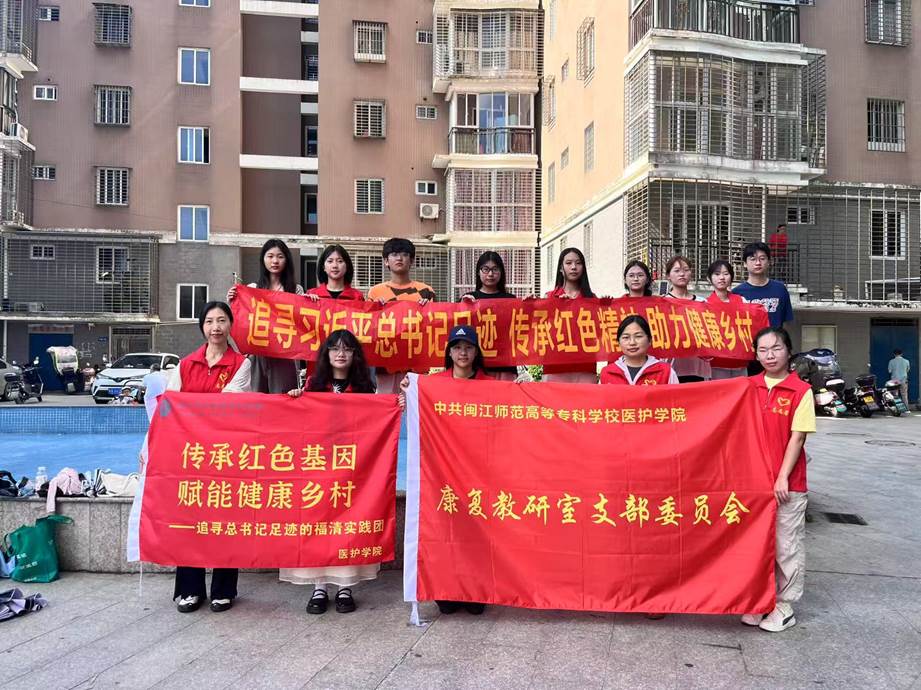 近日,闽江师范高等专科学校医护学院的"传承红色基因,赋能健康乡村"实践团队在康复教研室党员教师的带领下,走进乡村开展暑期实践活动。此次活动以党建为引领,将专业优势与乡村健康需求、侨乡特色深度融合,切实为乡村居民送去健康服务与知识,彰显新时代青年的责任担当。