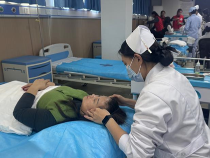 面对真实的服务场景,护理专业学生的专业功底与服务意识双双在线。穴位按摩精准到位,推、按、揉、提手法娴熟,根据老师的反馈灵活调整力度与节奏,在疏通经络中传递舒适感;面部全息刮痧循经施术,搭配专业介质轻柔调理,以淡淡的红晕见证排毒提亮的效果;中药面膜敷贴对症施策,补水、美白、舒缓、祛痘等功效型中药面膜精准适配需求,敷贴期间的头部按摩更添暖心细节;搭配冬日养生茶饮功效,助力内外协同调理,让养护更全面。