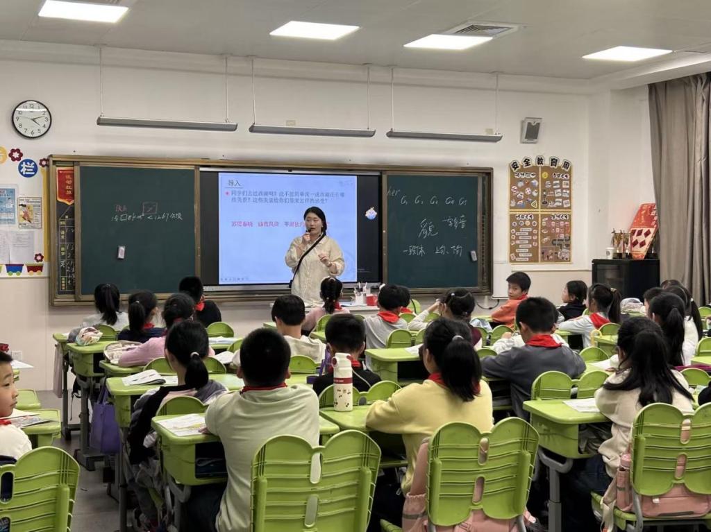 此次督导以随堂听课形式进行,考核小组现场考察了陈潇老师在实践岗位上的教学实施情况。陈潇老师为四年级2班执教了音乐课《西湖春晓》(人教版四年级下册)。作为高校教师深入小学课堂实践,陈老师将理论知识与小学学情相结合,通过意境导入、歌曲教唱、节奏体验与诗词融合等多种教学方法,引导学生感受江南音乐风格,课堂生动活泼,展现了良好的教学转换与实践应用能力。